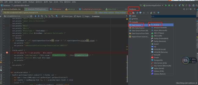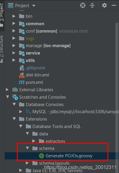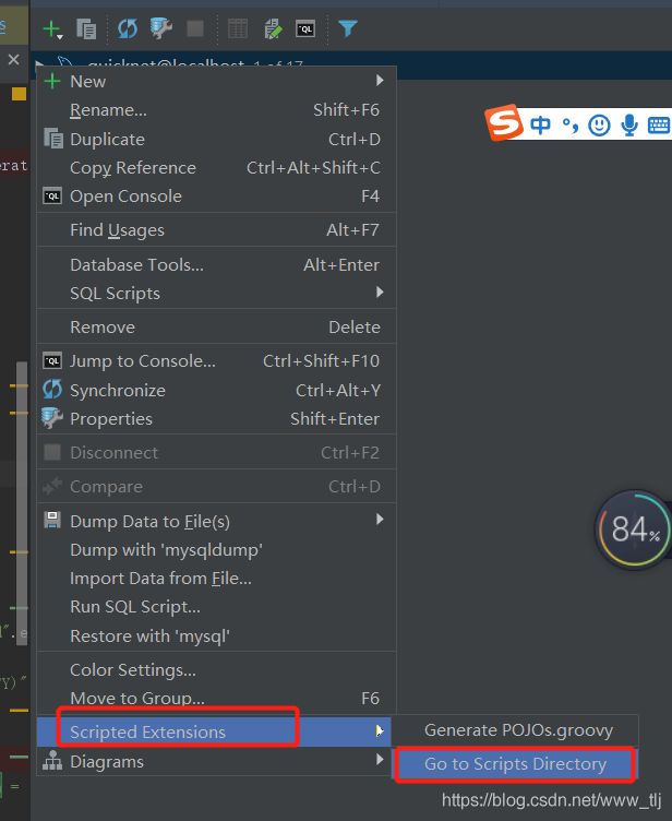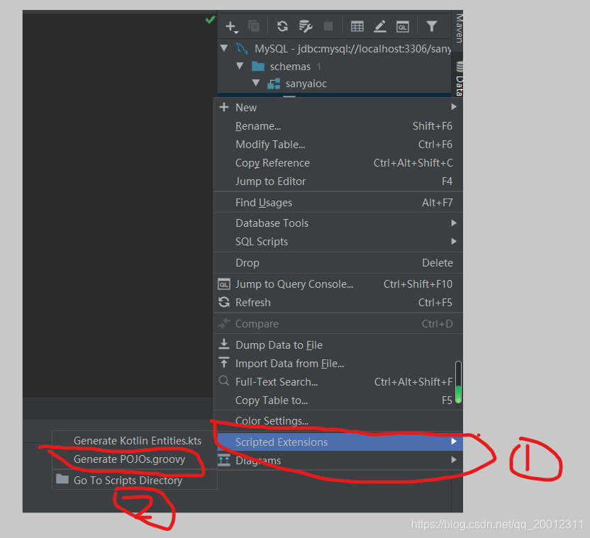 在database视图区域任意地方右键,点击 Scripted Extensions -> Go to Scripts Directory;编写POJOs.groovy脚本;