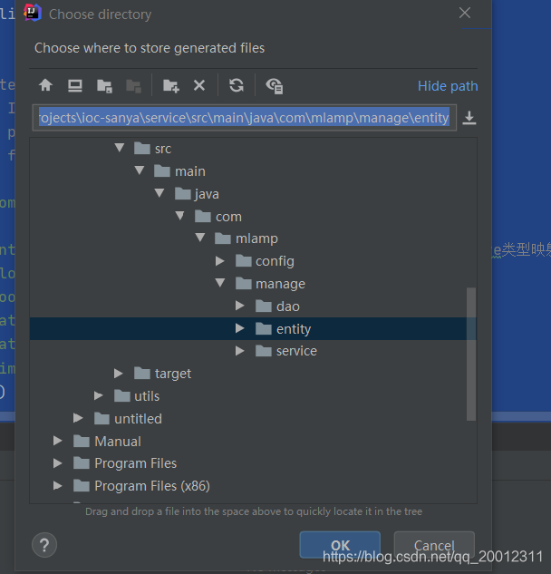 点击2处的内容会提示你选择实体保存的位置,点击ok即可生成实体
