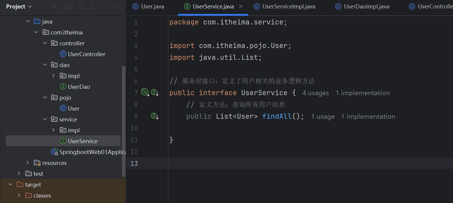 UserService接口