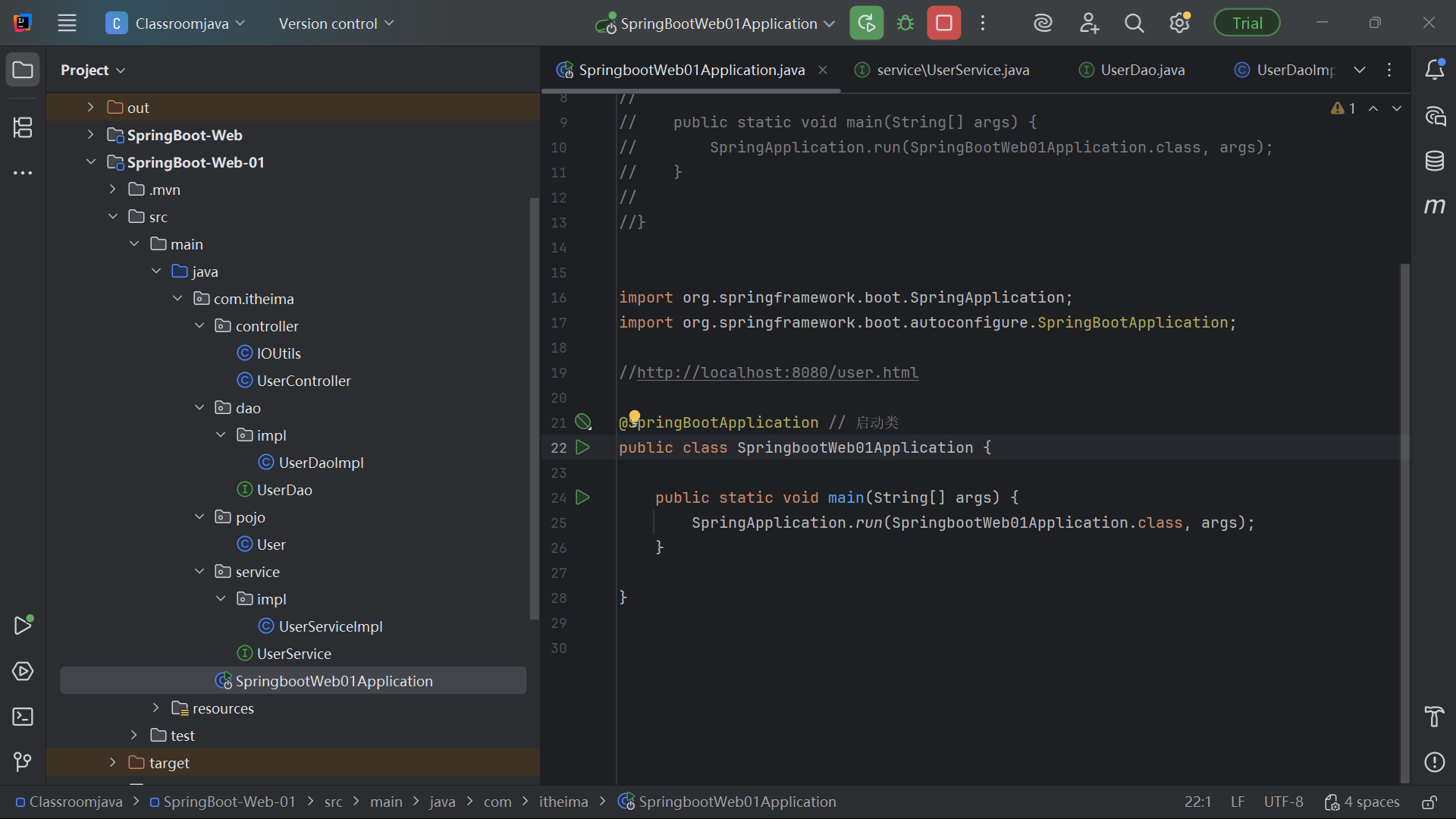 3.springboot-web-01的模块结构拆分如下