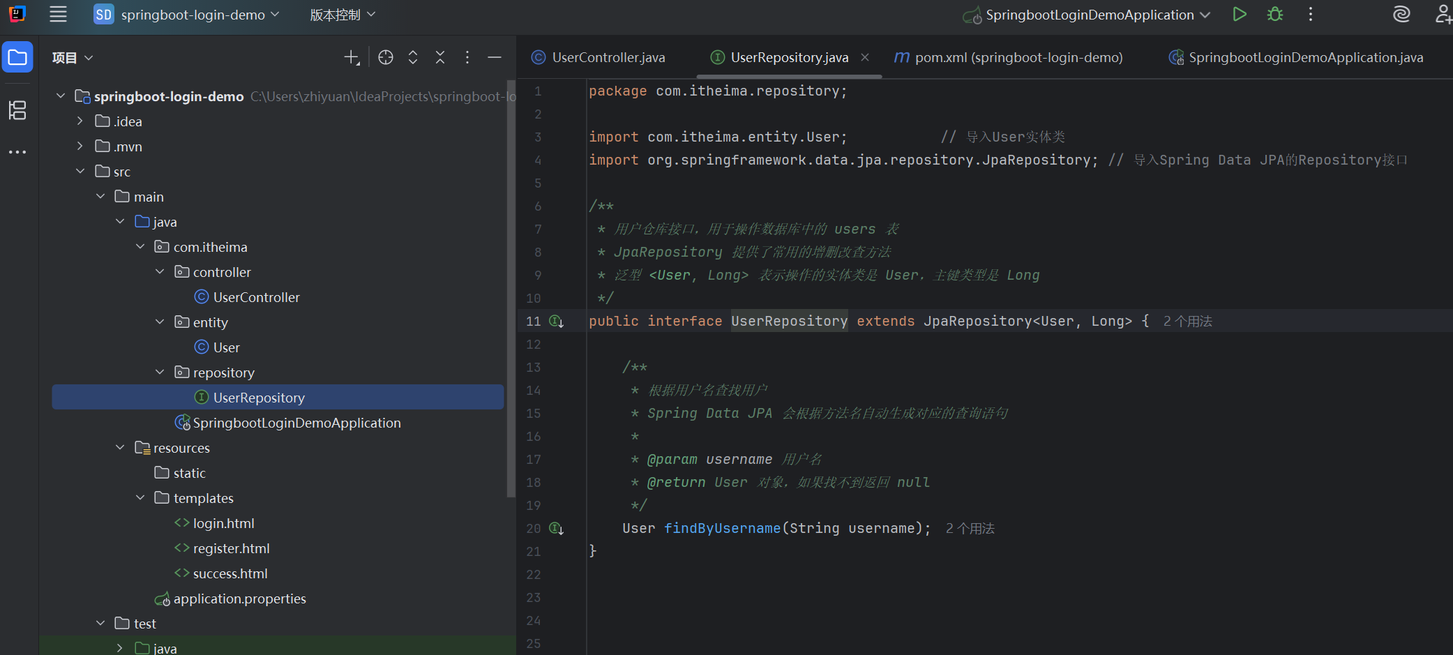 @Entity // 标记这是一个 JPA 实体类,Spring Boot 会将其映射到数据库表