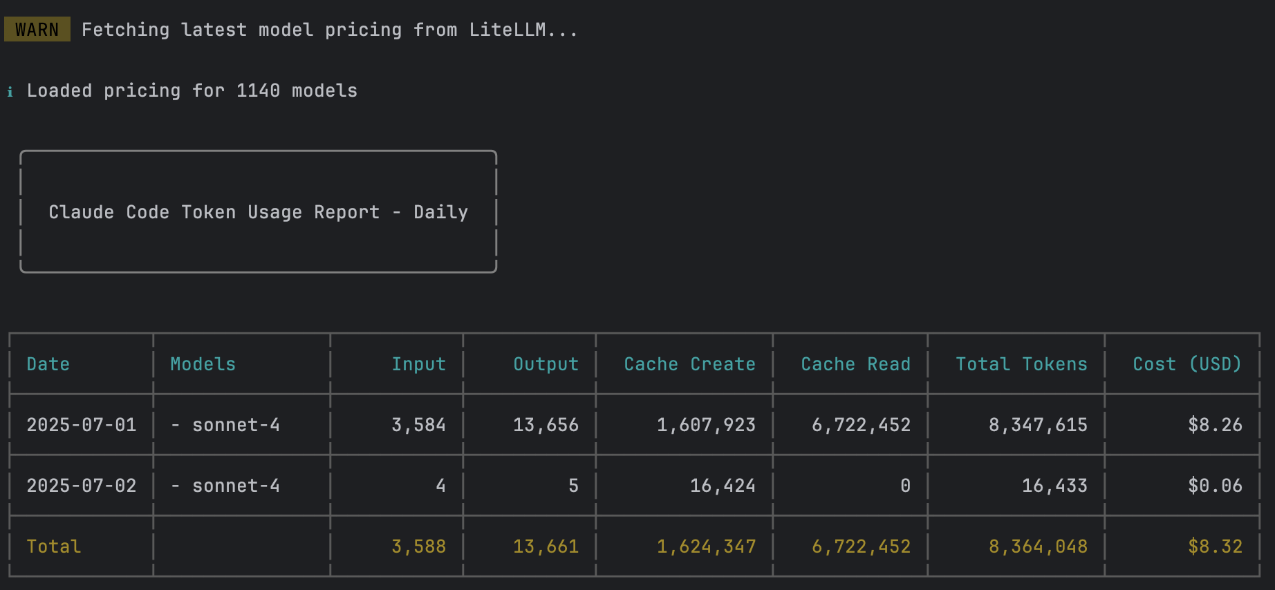 官方查看消耗,但过于笼统,不够直观,推荐使用 ccusage 工具来查看。