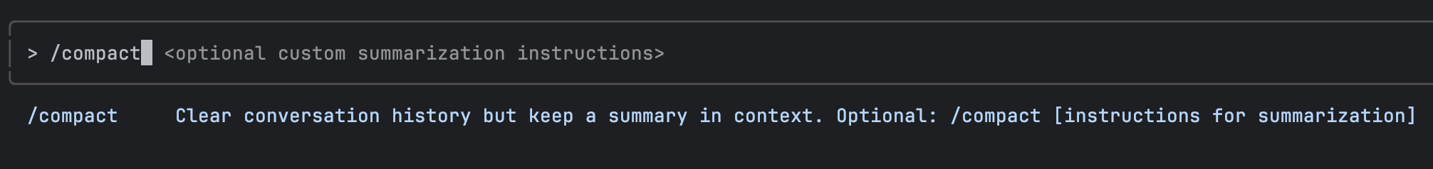 /compact可以压缩对话内容,减少令牌使用量。 - 手动压缩控制:虽然 Claude Code 默认在上下文超过 95% 容量时自动压缩(可通过