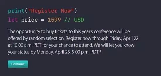 有意思的是,即便今年的WWDC门票售价高达1599美元(约合人民币10350元),但仍需提前预约,并通过摇号的方式抽出购买资格。虽然活动仍然针对应用程序的开发人员和软件合作伙伴,门票总是在几分钟内销售一空。