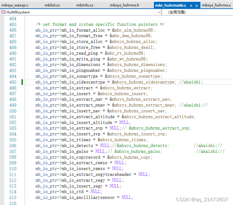 但目的也只是为了代码的整齐性,实际按照模板的例子对每种数据类型单独写数据IO是非常麻烦的,关键是mb_*_extract()之类的函数输出参数是不区分这几种类型的!所以建议不用区分,我把所有IO都写在MB_DATA_DATA类型里。然后在mbr_info_huhrms86()函数中将所有数据源都指向MB_DATA_DATA类型: