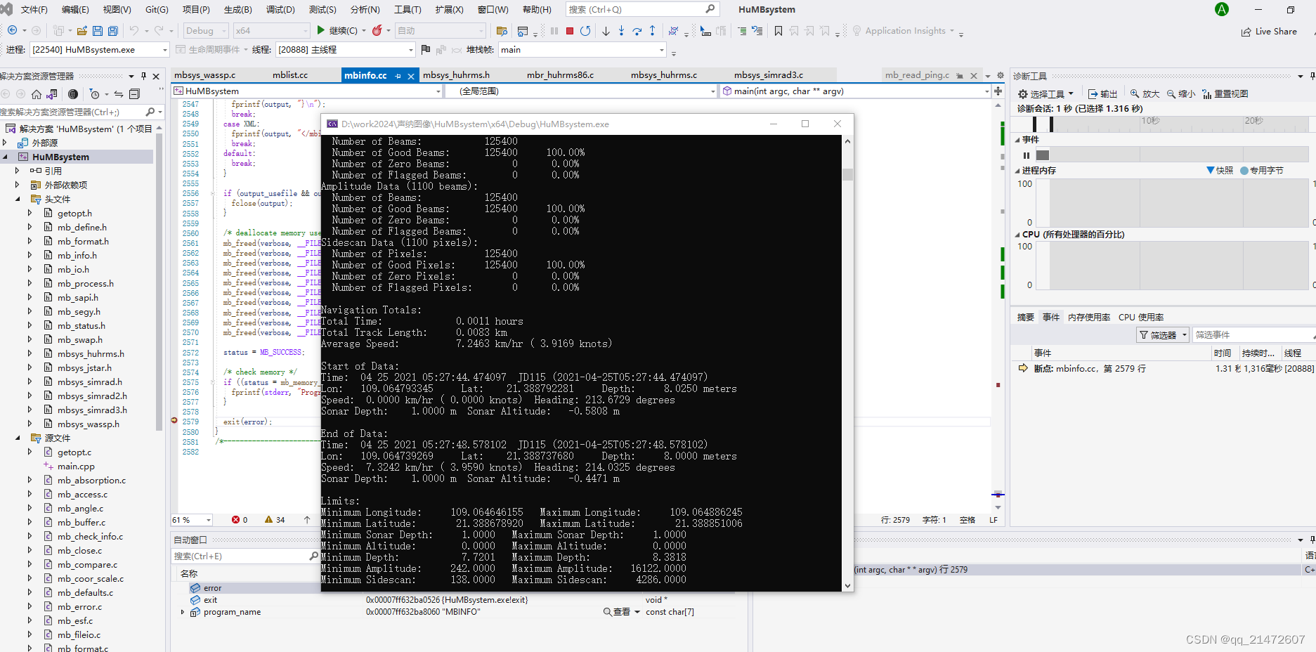 调试用的文件在MB-System-master\src\utilities文件夹下,选择mbinfo.cc与mblist.cc两个就够了,包含main()函数用于调试。