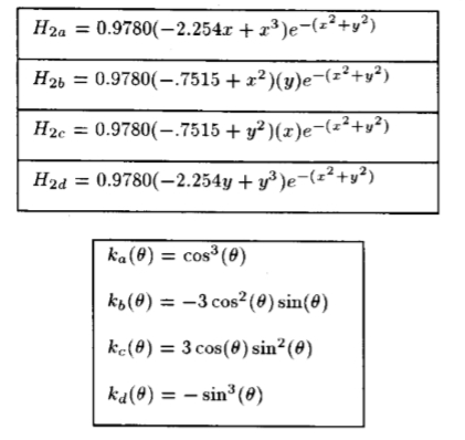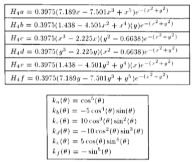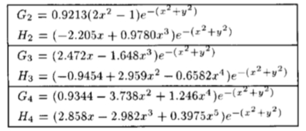 几个高斯导数和多项式拟合它们的希尔贝克变换(沿X轴进行的变换和导数)。 (对所列函数进行了规范化处理,以使它们平方的所有空间上的积分等于1。要操纵每个函数,请使用(8)和表1中的相应kj(