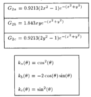 为了方便起见,其中缩放比例和标准化常数已设置为1。定向导数算子是可操纵的,如众所周知的[8],[12],[16],[18],[21]-[24],[27],[34]。让我们将高斯在x方向上的n阶导数写为Gn。令(...)表示旋转算子,使得对于任何函数f(x,y),