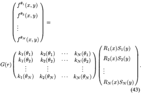 我们想要找到在什么条件下f(x,y)可以转向,即何时可以将其写成其旋转版本的线性和。