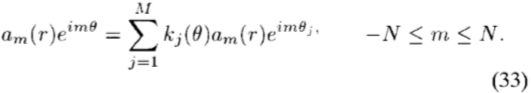 )所需的最小数量的基础函数感兴趣。设T为正或负频率 -N≤n≤N 的数量,在极角傅里叶分解中,f(r,