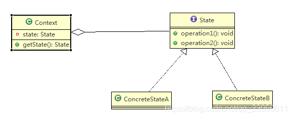 1) Context 类为环境角色, 用于维护State实例,这个实例定义当前状态