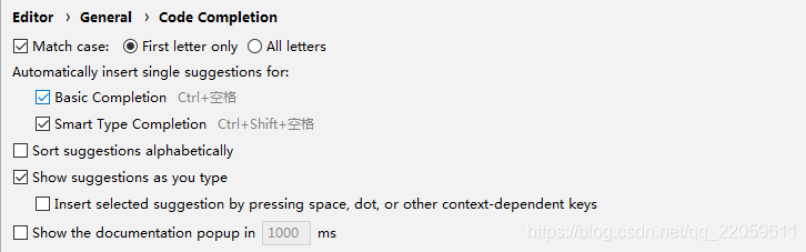 File | Settings | Editor | General | Code Completion Case | Sensitive Completion = None。