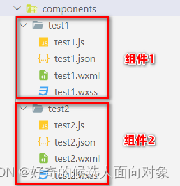从表面来看,组件和页面都是由 .js、.json、.wxml 和 .wxss 这四个文件组成的。但是,组件和页面的 .js 与 .json 文件有明显的不同: