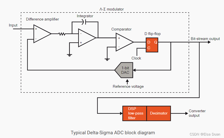 利用DSP技术来提高振幅轴分辨率并降低SAR设计中固有的高频量化噪声。delta-sigma adc复杂而强大的设计,使其成为需要尽可能高振幅轴分辨率的动态应用的理想选择。这就是为什么它经常出现在音频、声音和振动中,以及广泛的高端数据采集应用中。它也广泛用于精密工业测量应用。