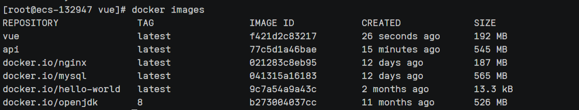 docker build -t vue . #点千万别漏了,这里取名镜像为vue,可以随便取名!