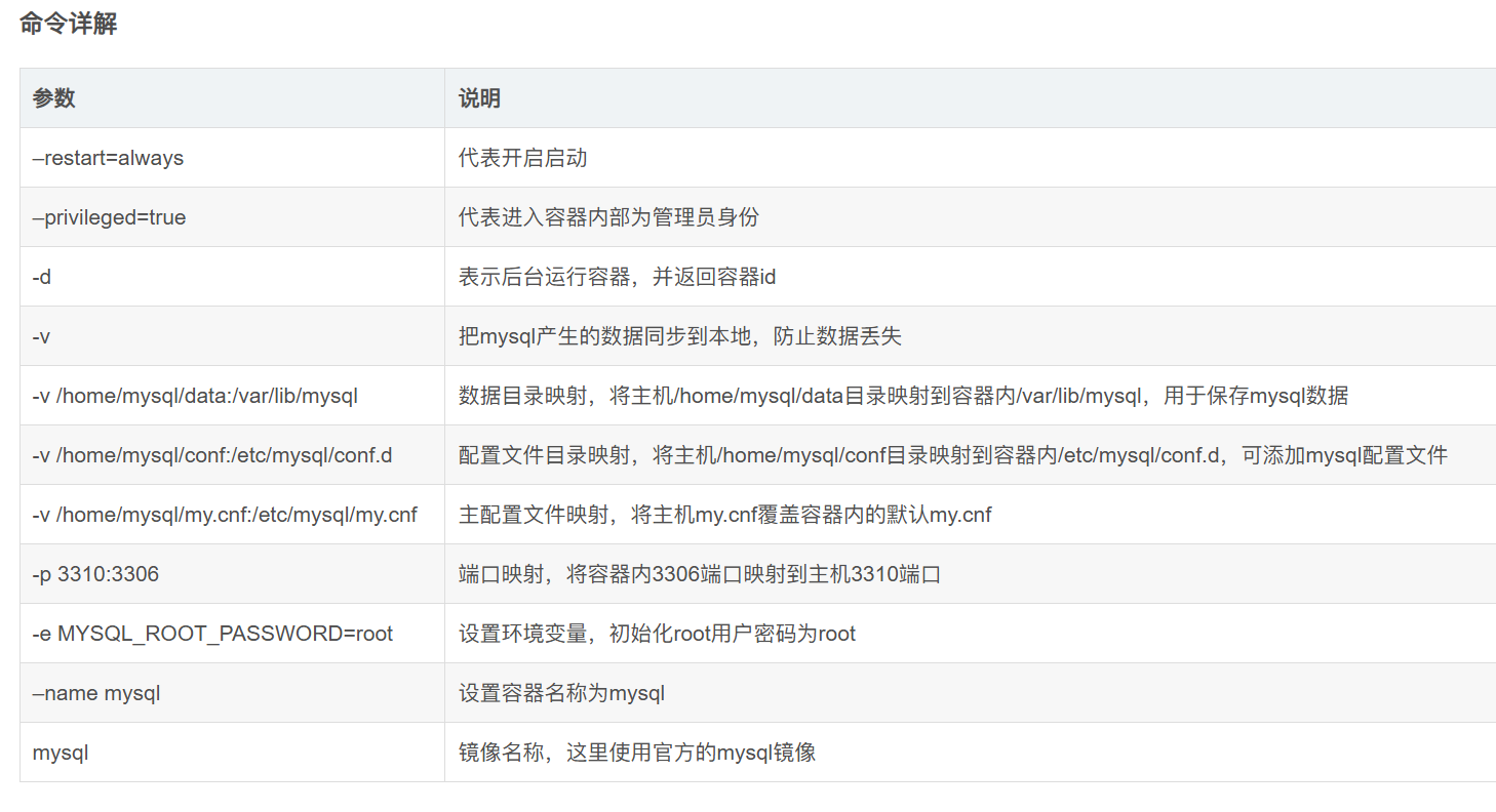 /home/mysql/data:/var/lib/mysql -v /home/mysql/conf:/etc/mysql/conf.d -v
