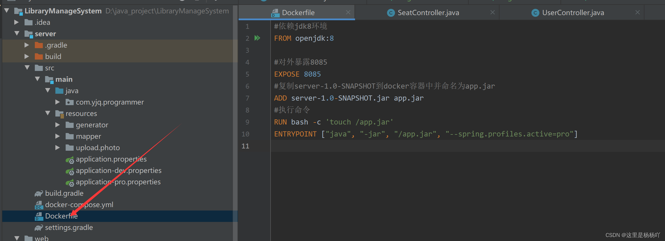 1、整合后端成Jar包(mvn package)并编写Dockerfile文件(无后缀名)