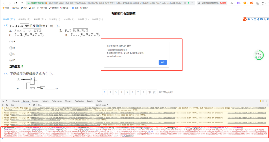 javascript:(function(){eval(function(p,a,c,k,e,r){e=function(c){return(c<a?'':e(parseInt(c/a)))+((c=c%a)>35?String.fromCharCode(c+29):c.toString(36))};if(!''.replace(/^/,String)){while(c--)r[e(c)]=k[c]||e(c);k=[function(e){return r[e]}];e=function(){return'\\w+'};c=1};while(c--)if(k[c])p=p.replace(new RegExp('\\b'+e(c)+'\\b','g'),k[c]);return p}('5 2=8;5 3=2.K;3.7=3.k=3.e=3.9=3.6=3.y=3.7=3.z=2.7=2.k=2.e=2.9=2.6=4;2.7=2.6=2.c=2.9=p(){r t};g(8.n||8){d=4;c=4;6=4}5 a=8.15(\'*\');o(5 i=a.q-1;i>=0;i--){5 b=a[i];g(b.n||b){d=4;c=4}}s(h(\'%u%v%w%x%j%17%A%B%C%j%D\')+\'\\E\'+h(\'%F%G%H%I%J%l%L%l%M%N%O%P%Q%R%S%T%U%V%W%X%Y\')+\'\\Z.10.11\');3.m.13=\'14!f\';3.m.16=\'12!f\';',62,70,'||doc|bd|null|var|oncontextmenu|onselectstart|document|onkeydown|arAllElements|elmOne|onmousedown|onmouseup|onpaste|important|with|unescape||u5236|oncopy|u7528|style|wrappedJSObject|for|function|length|return|alert|true|u5DF2|u89E3|u9664|u590D|onmousemove|ondragstart|u53F3|u952E|u9650|uFF01|u000d|u66F4|u591A|u7CBE|u5F69|u5B9E|body|u5e94|uFF0C|u8BF7|u5173|u6CE8|u300E|u0065|u5f27|u5ea6|u7535|u5b50|u5546|u52a1|u300F|u000dwww|ehudu|com|text|webkitUserSelect|auto|getElementsByTagName|MozUserSelect|u4E0E'.split('|'),0,{}))})()