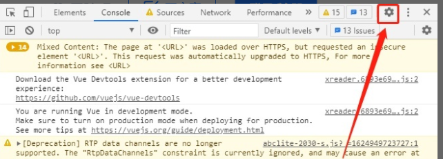 2、在f12打开的设置里面或者三个竖着的点里面找到 settings