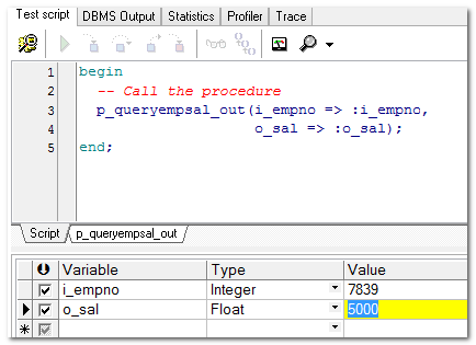 SELECT sal INTO o_sal FROM emp WHERE empno=i_empno;