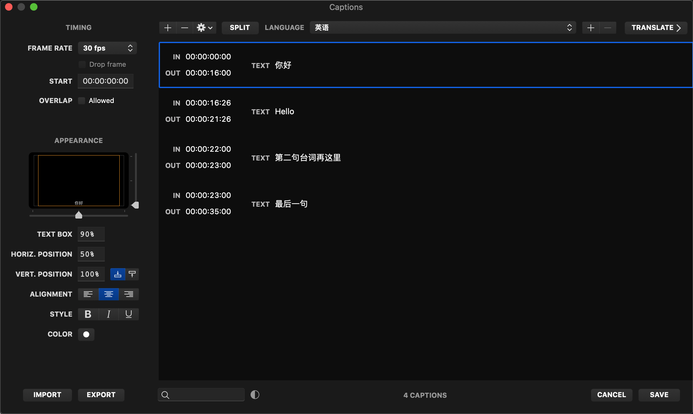 一个字幕插件,可以导入字幕、导出字幕。单独编辑字幕。