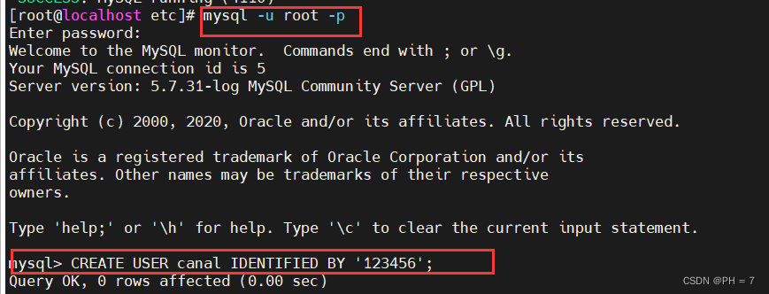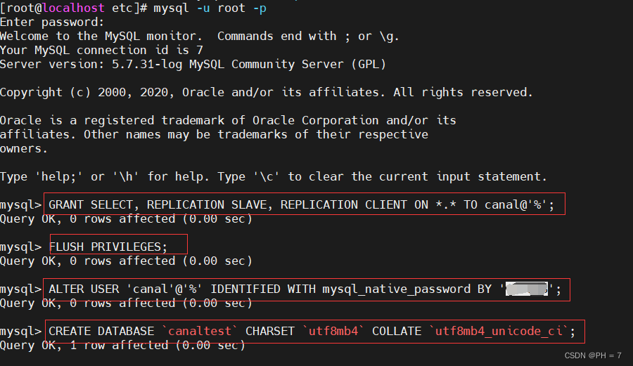 ALTER USER 'canal'@'%' IDENTIFIED WITH mysql_native_password BY '123456';