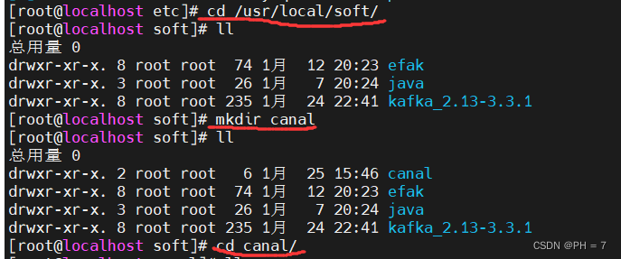 将下载好的tar包上传至创建的目录 /usr/local/soft/canal