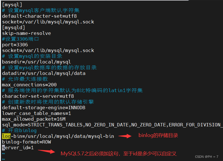 - 首先需要在数据库上开启binlog,且binlog-format必须是ROW