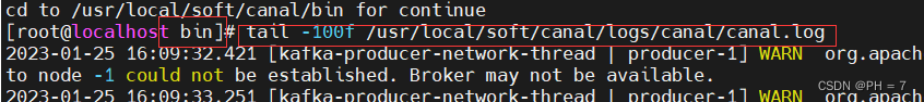 tail -100f /usr/local/soft/canal/logs/canal/canal.log