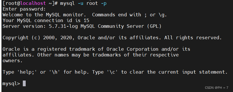 - 然后进入到MySQL,mysql -u root -p,输入密码登录