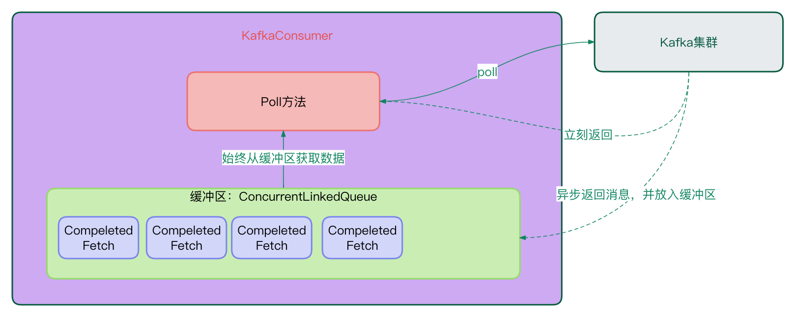 当客户端请求消息的时候Kafka Consumer会先尝试从本地缓存获取,如果获取到了消息则直接返回。