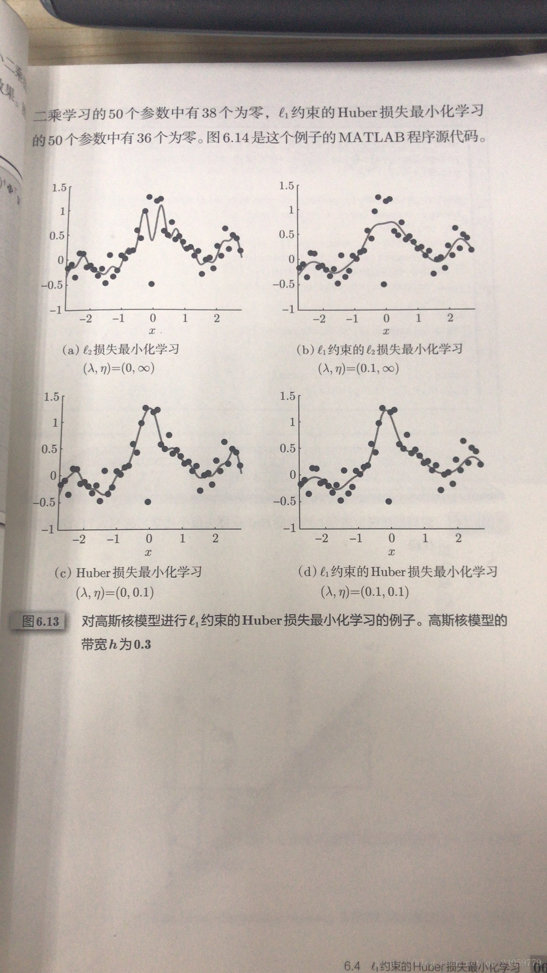 本文通过Matlab代码展示了不同类型的最小二乘学习方法,包括标准最小二乘、带有l1约束的最小二乘及Huber损失下的最小二乘,并对结果进行了可视化比较。