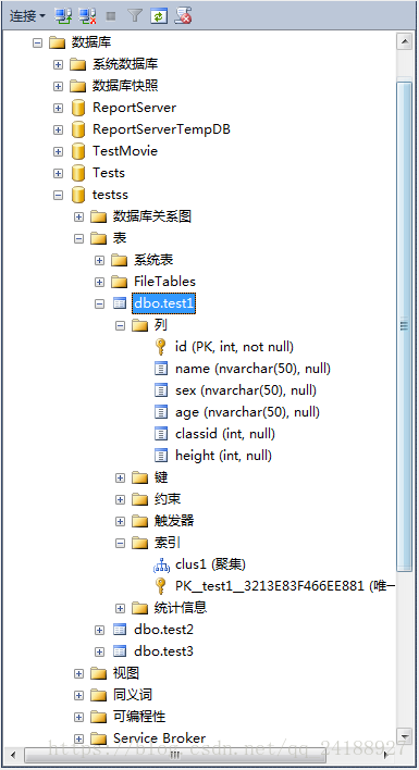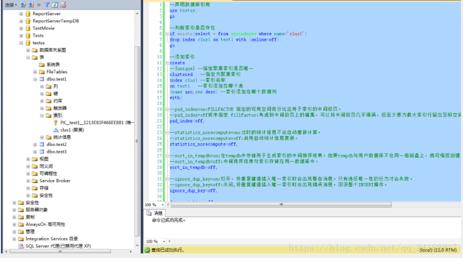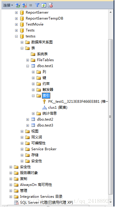 7、在对象资源管理器中即可看到新创建的索引(如果没有出现可以刷新再次查看)。