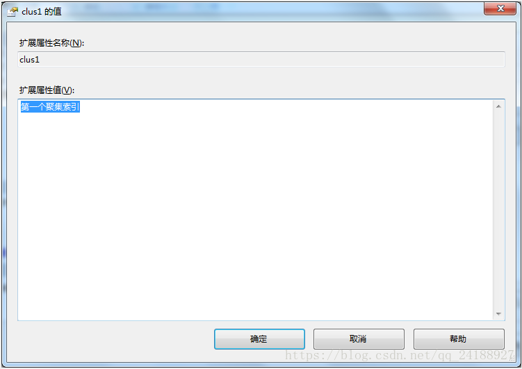 execute sp_addextendedproperty N'MS_Description',N'第一个聚集索引',N'schema',N'dbo',N'table',N'test1',N'index',N'clus1';