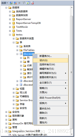 1、连接数据库,选择数据库,选择数据表-》右键点击-》选择设计。