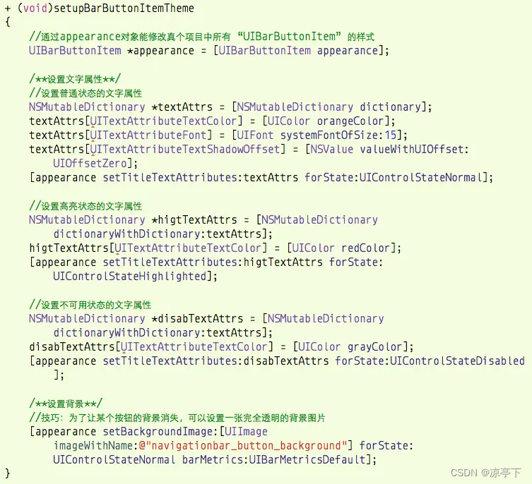 设置UIBarButtonItem的主题,如下: