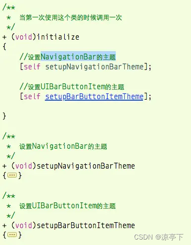 在HMNavigationController类中,修改initialize方法,设置NavigationBar和UIBarButtonItem的主题,如下: