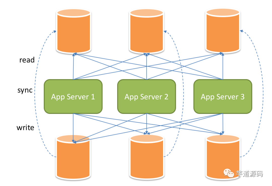 读写分离虽然可以提升系统的吞吐量和可用性,但同时也带来了数据不一致的问题。这包括多个主库之间的数据一致性,以及主库与从库之间的数据一致性的问题。并且,读写分离也带来了与数据分片同样的问题,它同样会使得应用开发和运维人员对数据库的操作和运维变得更加复杂。下图展现了将分库分表与读写分离一同使用时,应用程序与数据库集群之间的复杂拓扑关系。