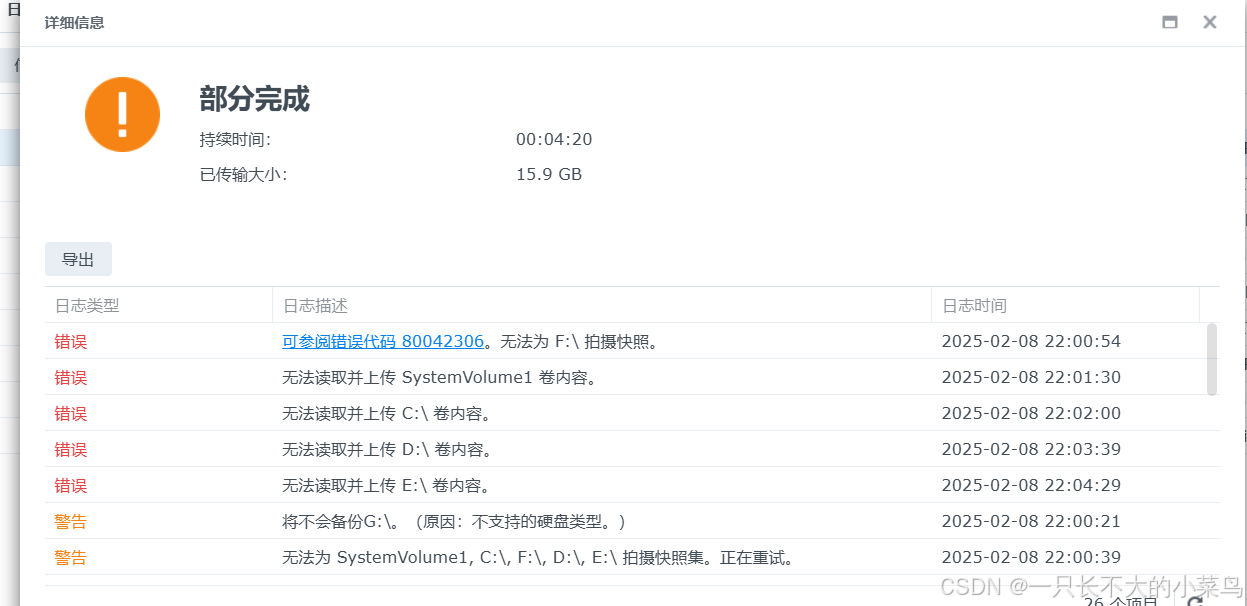 同时NAS的每日备份发现也没法正常备份,问题应该都是同一个导致的
