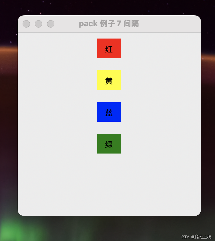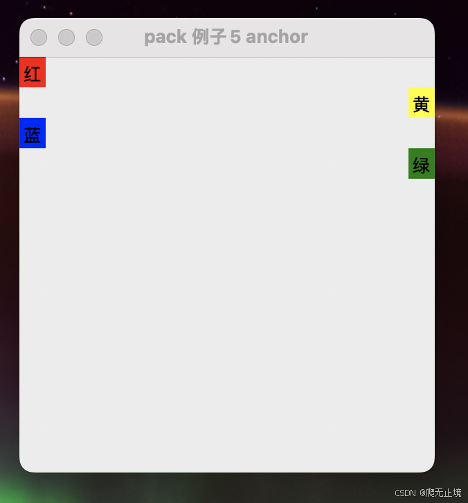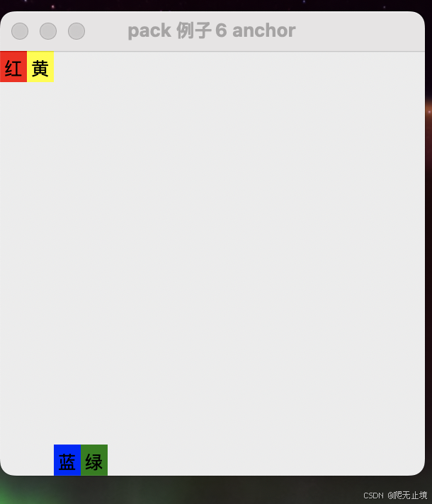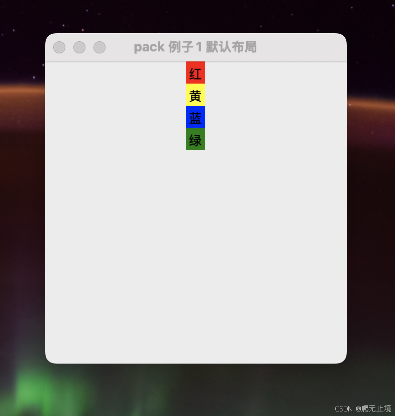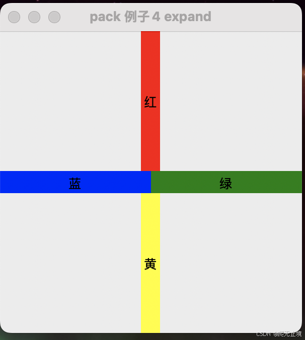 # 并不是在整个窗口进行布局.比如本例有4个标签组件,默认范围为4行(虽然pack中没有行的概念)。