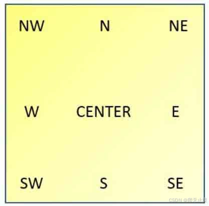 # 组件默认是按照**垂直方向(从上到下)**排列的,即side=TOP. anchor 只是控制组件在容器内的对齐位置