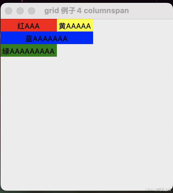 lable2 = Label(root, text="黄AAAAA", bg="yellow")