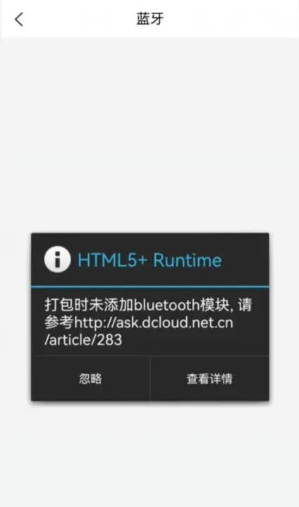 否则,我们在使用 APP 的时候,应用将会提示我们 “打包时未添加 bluetooth 模块”,影响我们的正常使用。
