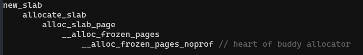 new_slab的调用栈,一直调用到buddy system的分配函数: