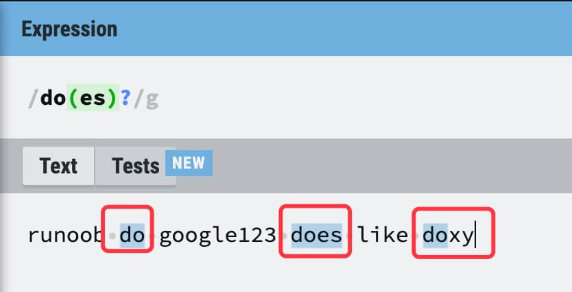 正则表达式后面的全局标记 g 指定将该表达式应用到输入字符串中能够查找到的尽可能多的匹配。