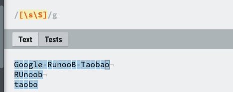 | [ABC] | 匹配 [...] 中的所有字符,例如 [aeiou] 匹配字符串 "google runoob taobao" 中所有的 e o u a 字母。