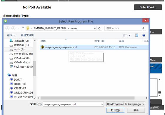 l LoadXML设置,选择“第3步中的输出路径\emmc\rawprogram_unsparse.xml”