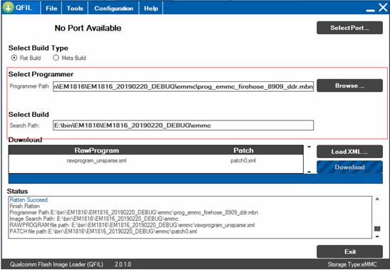 l 设置刷机包路径(即第3步中的输出路径\emmc\prog_emmc_firehose_8909_ddr.mbn)