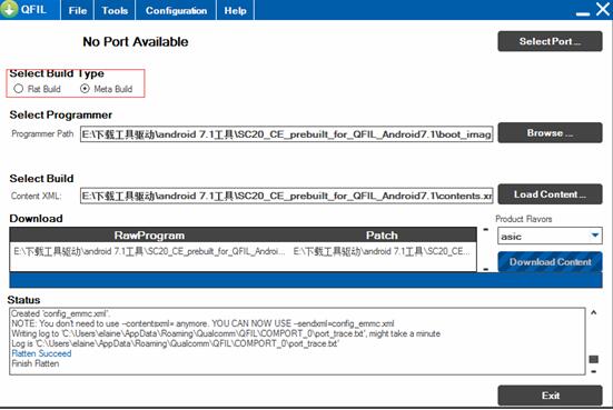 Content XML设置为"xxxx\SC20_CE_prebuilt_for_QFIL_Android7.1\contents.xml"