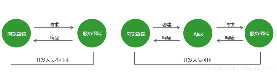 onreadystatechange:readyState改变时调用的函数status:服务器返回的HTTP状态码(如,200, 404)statusText:服务器返回的HTTP状态信息(如,OK,No Content)responseText:作为字符串形式的来自服务器的完整响应responseXML: Document对象,表示服务器的响应解析成的XML文档abort():取消异步HTTP请求getAllResponseHeaders(): 返回一个字符串,包含响应中服务器发送的全部HTTP报头。每个报头都是一个用冒号分隔开的名/值对,并且使用一个回车/换行来分隔报头行getResponseHeader(headerName):返回headName对应的报头值open(method, url, asynchronous [, user, password]):初始化准备发送到服务器上的请求。method是HTTP方法,不区分大小写;url是请求发送的相对或绝对URL;asynchronous表示请求是否异步;user和password提供身份验证setRequestHeader(name, value):设置HTTP报头send(body):对服务器请求进行初始化。参数body包含请求的主体部分,对于POST请求为键值对字符串;对于GET请求,为null